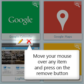 To edit or delete an item mouse over the item, a control panel will appear, choose edit or remove.