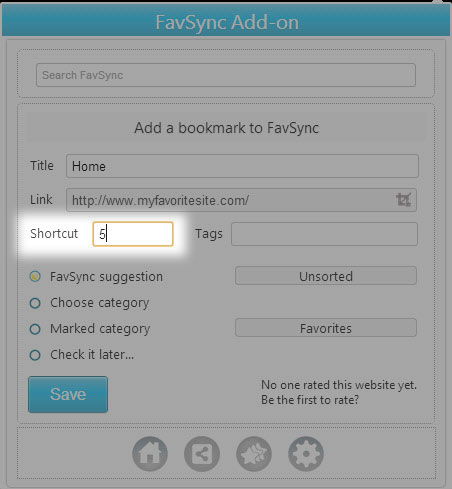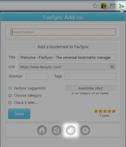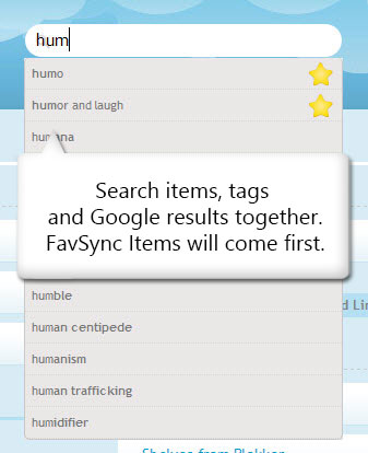 FavSync is also the only service that integrates with your browser on ALL levels: browser add-on, address bar integration, merging with Google results and the browser new tab.