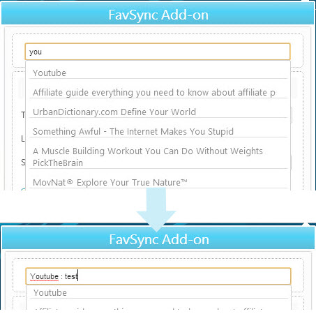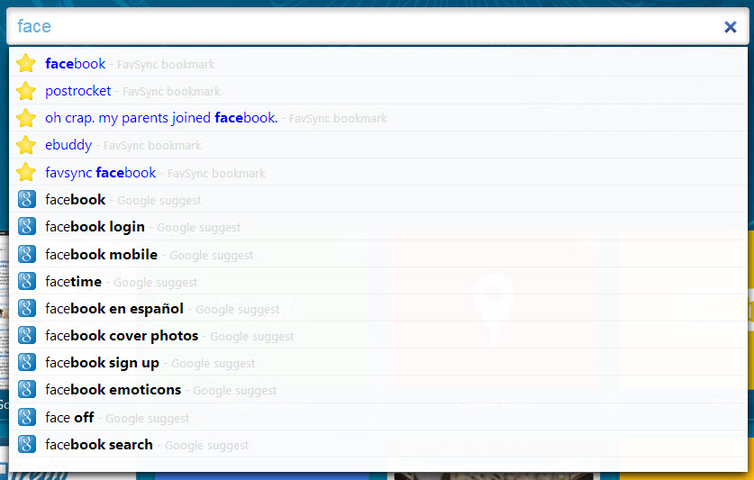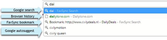 4. Through the address bar - as you type in your search bar, results from FavSync and Google will appear *RECOMMENDED*