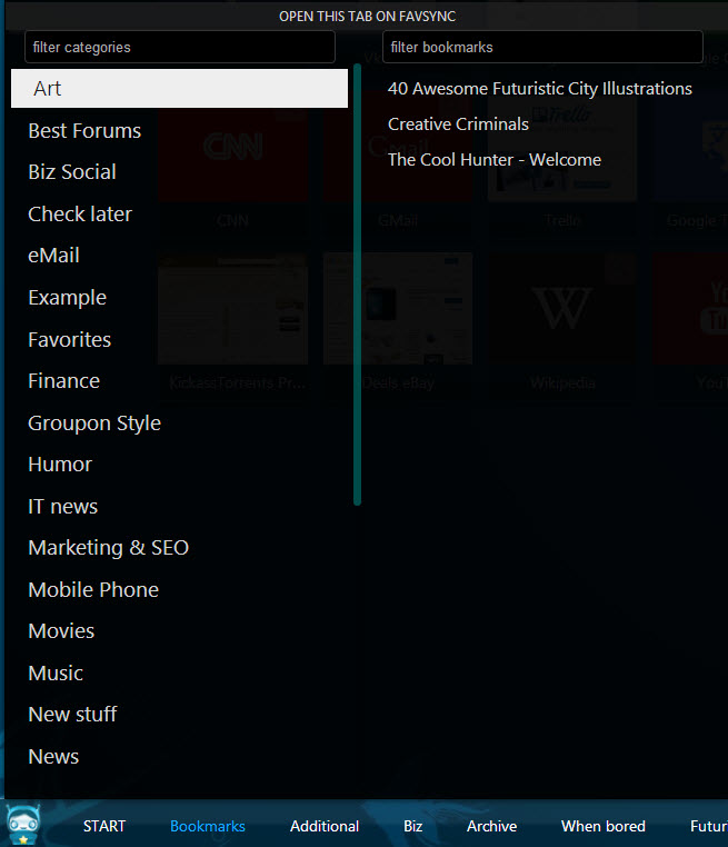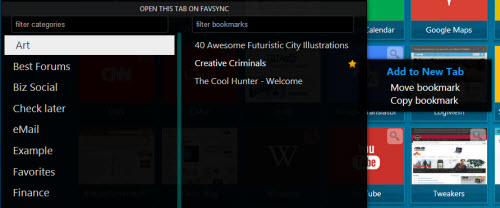5. Through the New Tab* - as you open your Chrome or Firefox new tab, FavSync items will appear