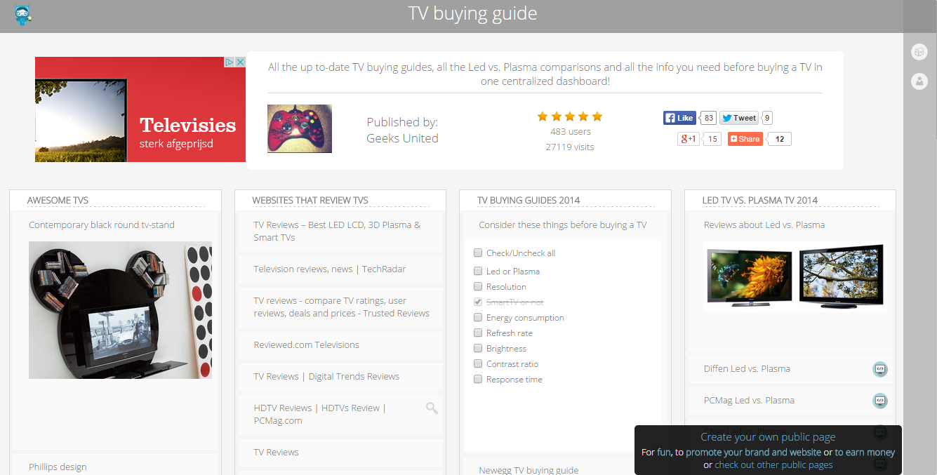 ...get started Collect: Store links, framed websites (iFrame), images, videos, notes, articles, news feeds (RSS) and lists on your public page. Collect a lot of useful content about a popular subject. -